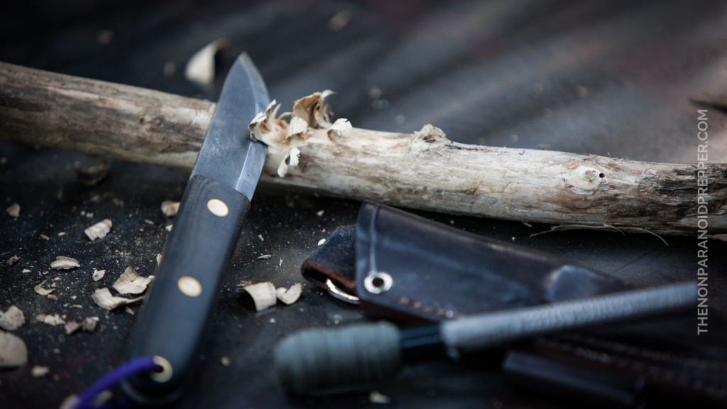 A survival knife can serve as a multi-functional tool, from cutting branches for shelter to self-defense.